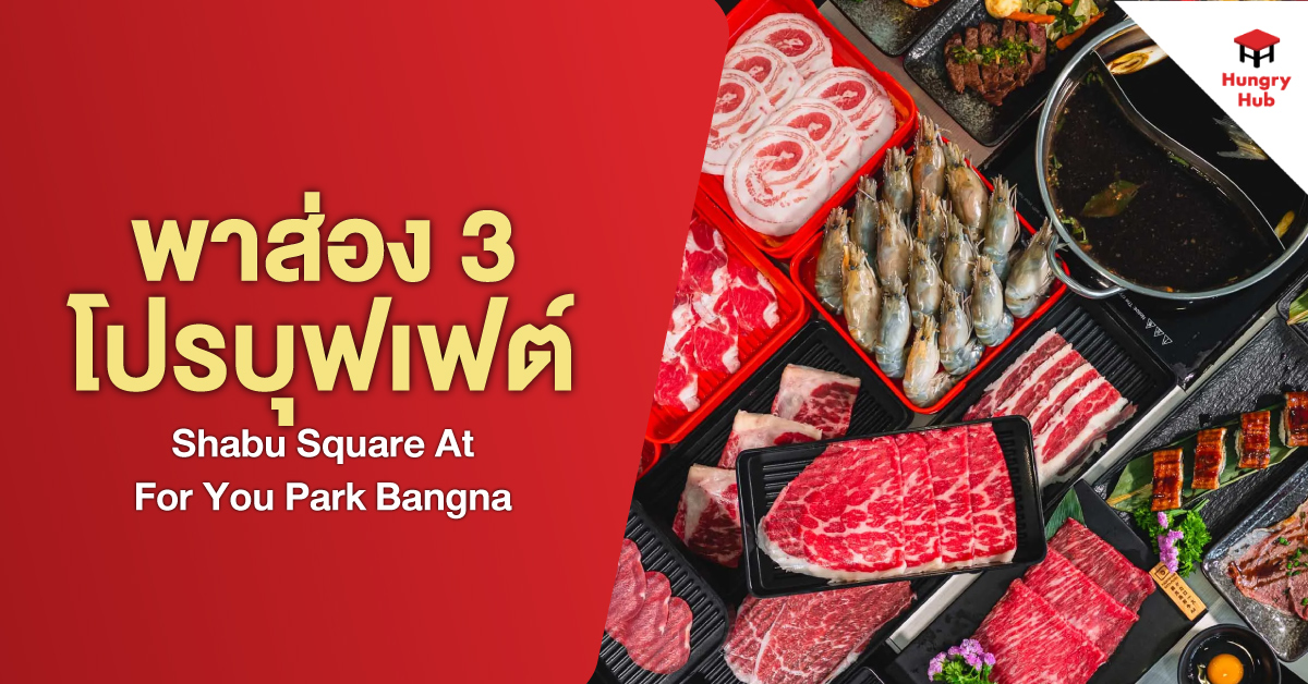 อยู่บางนา แต่ก็ไม่รู้ว่าจะไปทานชาบูที่ไหนดี แต่ก็บังเอิญผ่าน Shabu Square มาพอดี แต่ก็อยากรู้ว่ากินโปรไหนคุ้มว่า วันนี้ Hungry Hub เลยไม่รอช้าขอมัดรวม 3 โปรโมชั่นบุฟเฟต์ Shabu Square At For You Park Bangna ที่เอาใจสายพรีเมียมแบบเต็มที่ โปรไหนจะได้ทานอะไรบ้าง เช็คเลย!!
